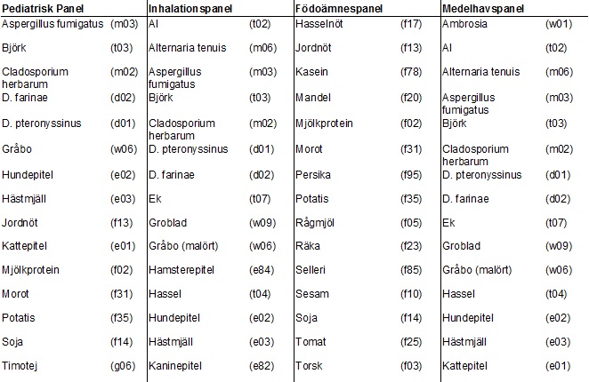 Sortimentet omfattar 4 olika paneler med vardera 20 allergener.